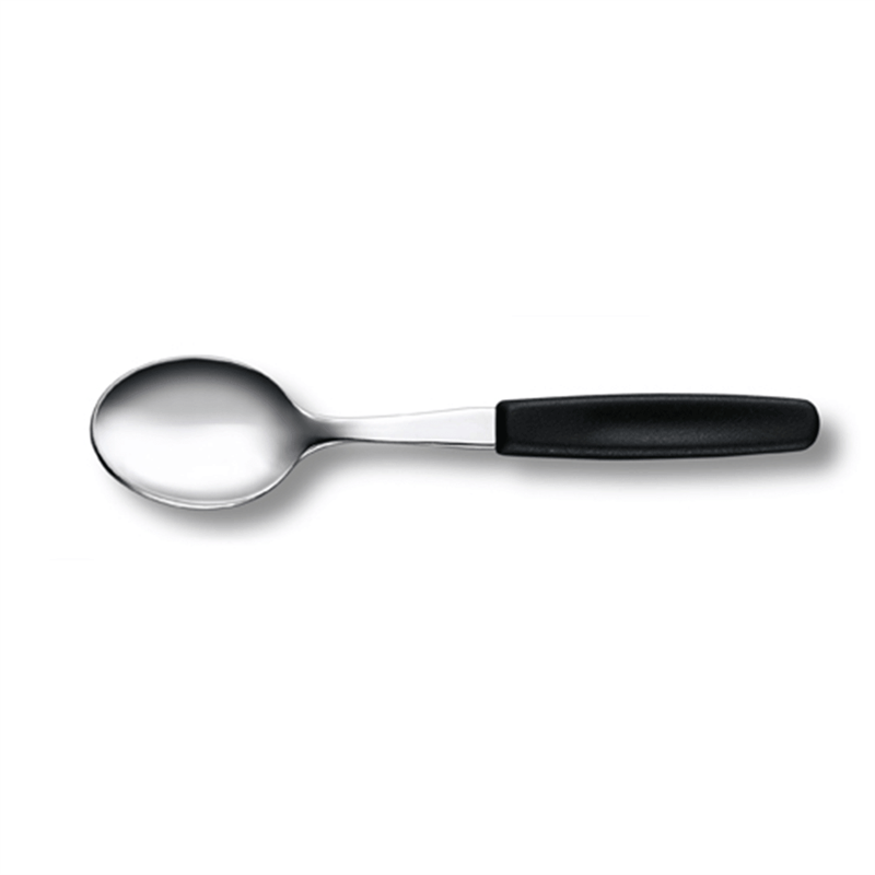 Skeen er skabt til at måle og servere præcise mængder, hvilket gør den uundværlig for kaffeentusiaster, baristaer og professionelle køkkener, hvor kvalitet og funktionalitet prioriteres højt. Det ergonomiske design forbedrer håndteringen, mens den blanke rustfri stålskål sikrer nem rengøring og høj hygiejne. Skeens tidløse, sorte udtryk skjuler effektivt brugstegn, hvilket gør den velegnet til både hjemmet og caféer. Det diskrete Victorinox-logo på skaftet understreger produktets schweiziske håndværk og kvalitet uden at gå på kompromis med det stilrene design.