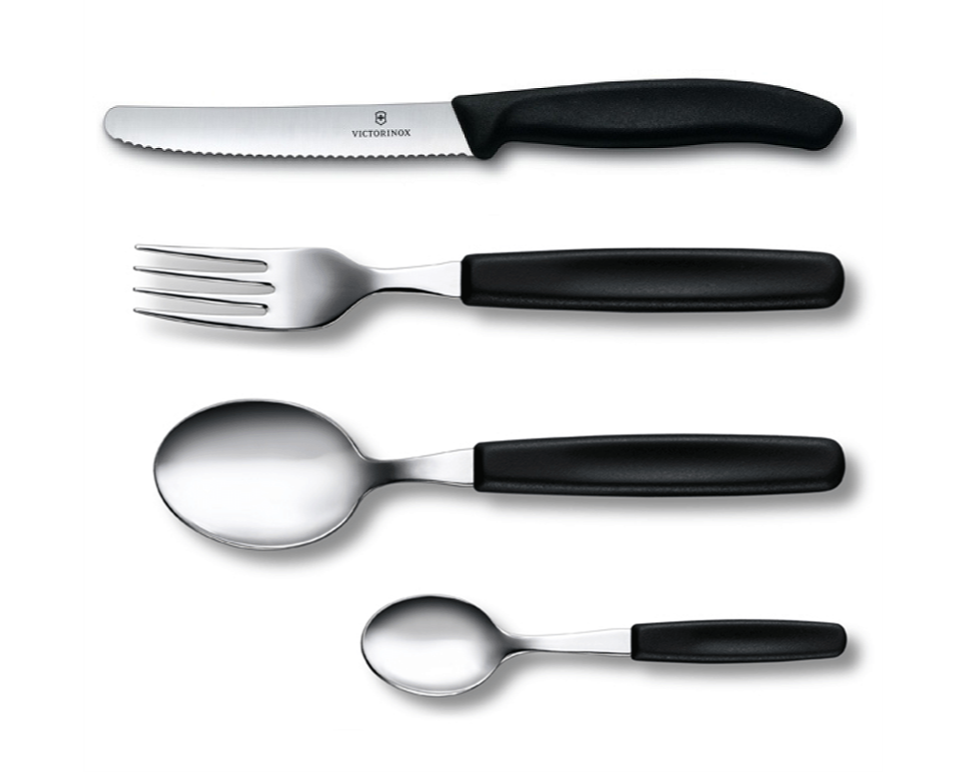Victorinox Swiss Classic bestiksæt m. 24 dele og bordknive – sort 6 bordkniv, 6 gafler 6 spiseskeer og 6 kaffeskeer
