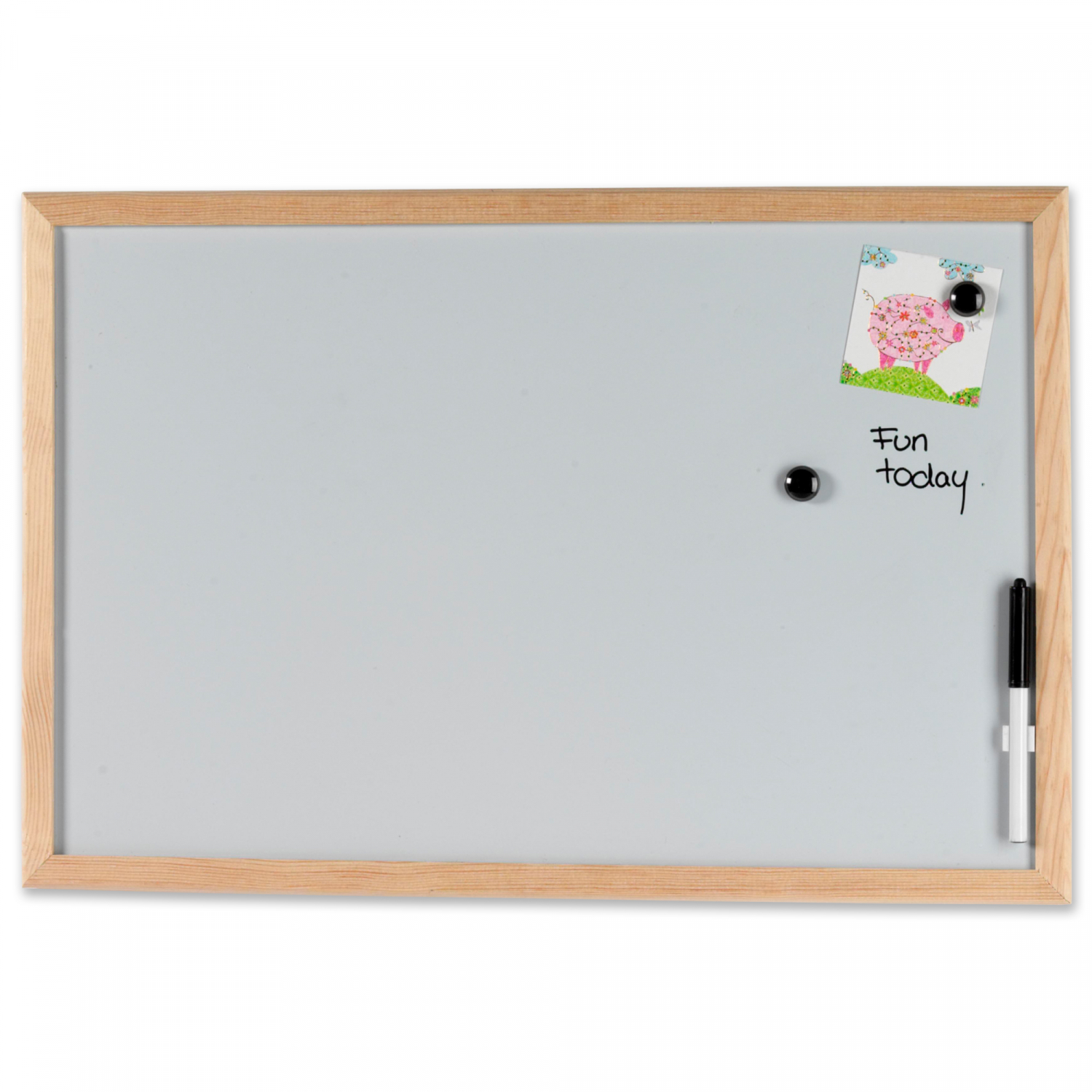 Magnetisk whiteboard tavle 60 x 40 cm. Med træramme. Skriv på tavlen med en marker, og sæt ting op på den med magneter.