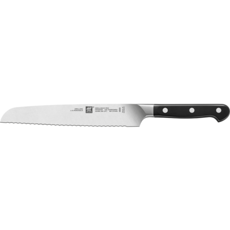 En kniv med et 20 cm langt blad i højkvalitets rustfrit stål med satinfinish sikrer præcise og rene snit i både sprøde skorper og bløde krummer. Det takkede blad er designet til brød og gør det nemt at skære selv store brød uden at mase eller smuldre. Det sorte håndtag i slidstærkt kunststof med tre nittefæstninger giver et sikkert og komfortabelt greb, der balancerer kniven optimalt og mindsker træthed ved længere brug. Kombinationen af et elegant og funktionelt design gør kniven velegnet til både hjemmekøkkenet og professionelle miljøer, hvor præcision og holdbarhed er afgørende.