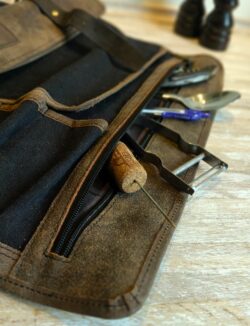 Vi tilbyder knivtasker i mange forskellige størrelser. Små ruller kan indeholde 3-5 knive, mens større tasker og mapper nemt kan rumme 10, 20 eller endnu flere knive samt tilbehør som strygestål, pincetter og paletknive.